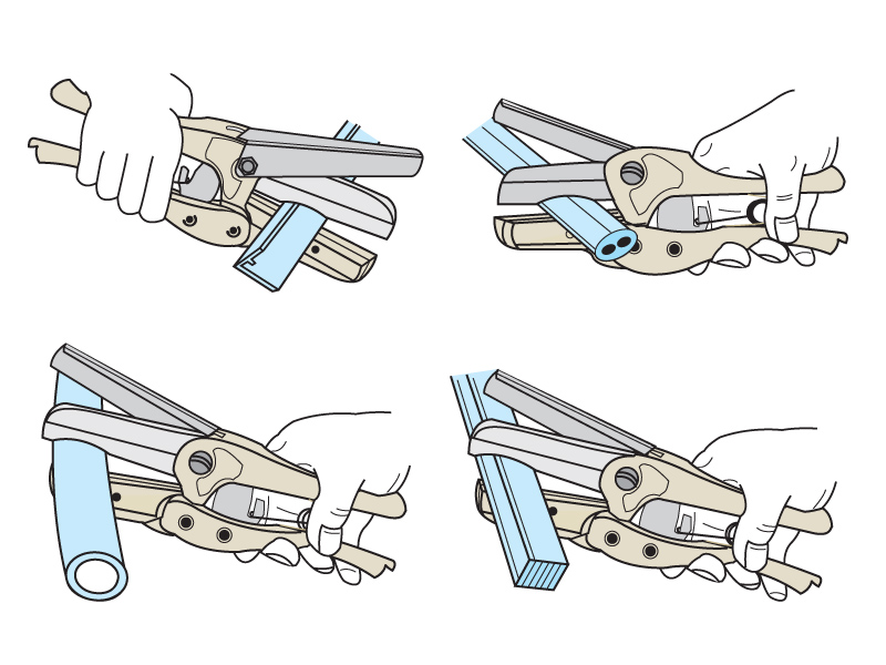 Cutting nylon hose, rubber hose, soft cable wire, plastic channel, leather belt, tree branch, plastic protector, cable protector, etc.