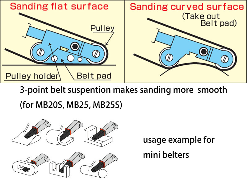 3-point belt supporting system offers easier and more smooth sanding operation for better finish.